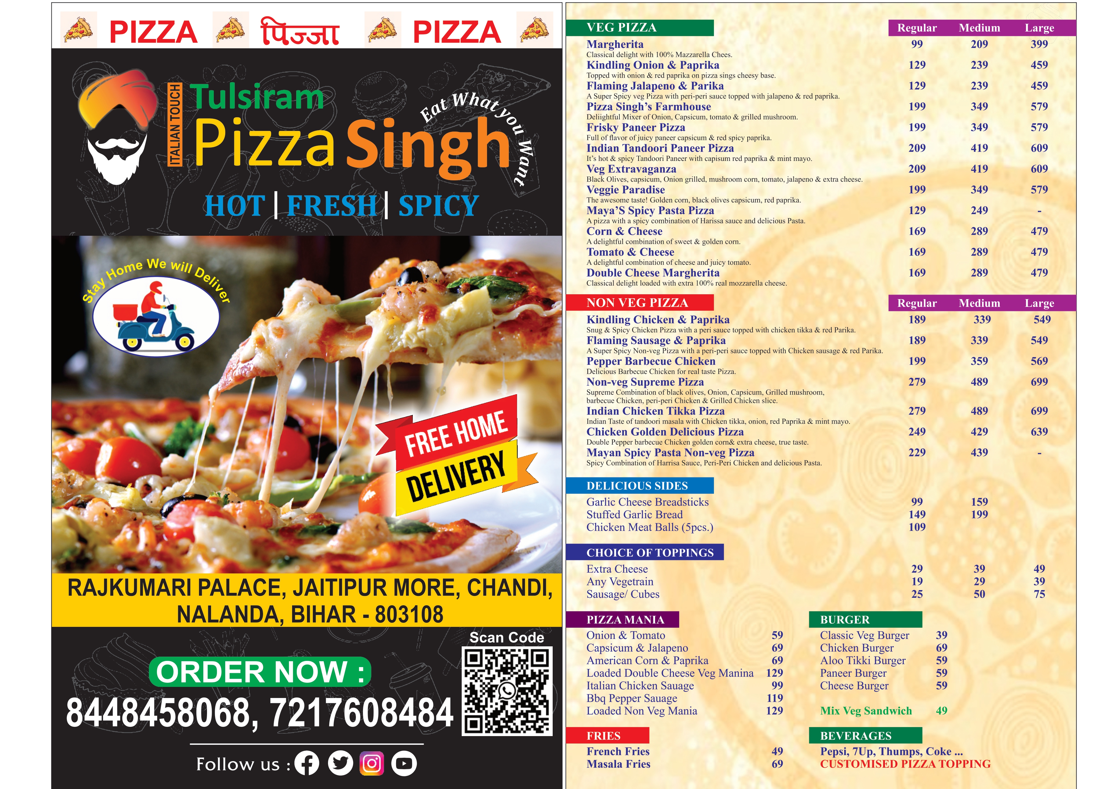 Website refers to Tulsiram Pizza Singh, accessible from http://pizzasingh.co.in/